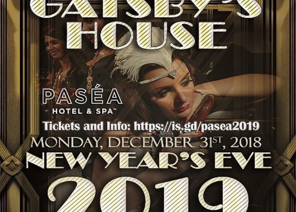 Gatsby’s House OC New Year’s Eve: 4hr Open Bar, Tray Pass Apps, Roaring 20s themed NYE party – Dec. 31st (9:30 pm to 2am) at Pasea Hotel, Huntington Beach, CA.